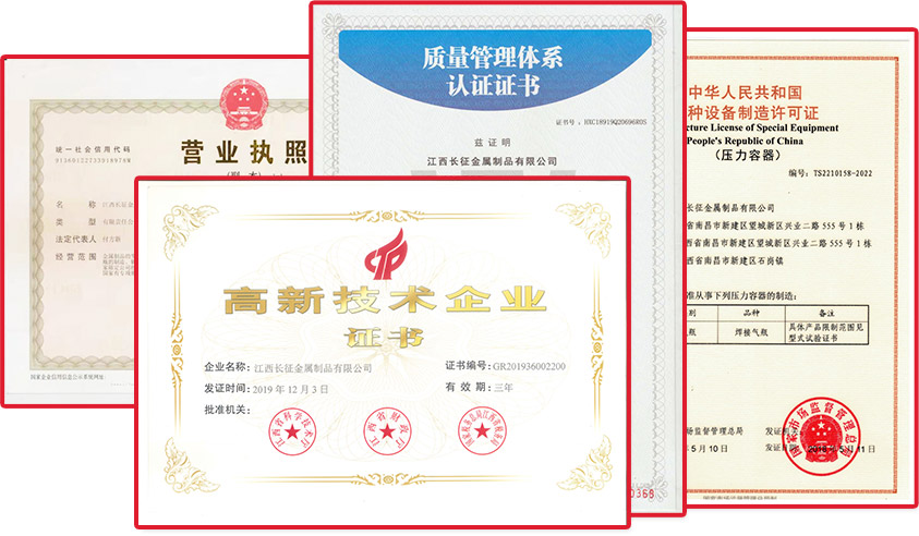 江西長征金屬制品有限公司,原大型航天軍工企業(yè)江西長征機器廠,是國家勞動部定點生產(chǎn)氣瓶的專業(yè)廠家。公司擁有雄厚的軍工技術(shù)力量,設備先進,檢測手段完備,按照GB/T5100標準和GB/T5842標準、GB/T17673標準要求,建立了嚴格的企業(yè)管理制度和完整有效的產(chǎn)品質(zhì)量保證體系。